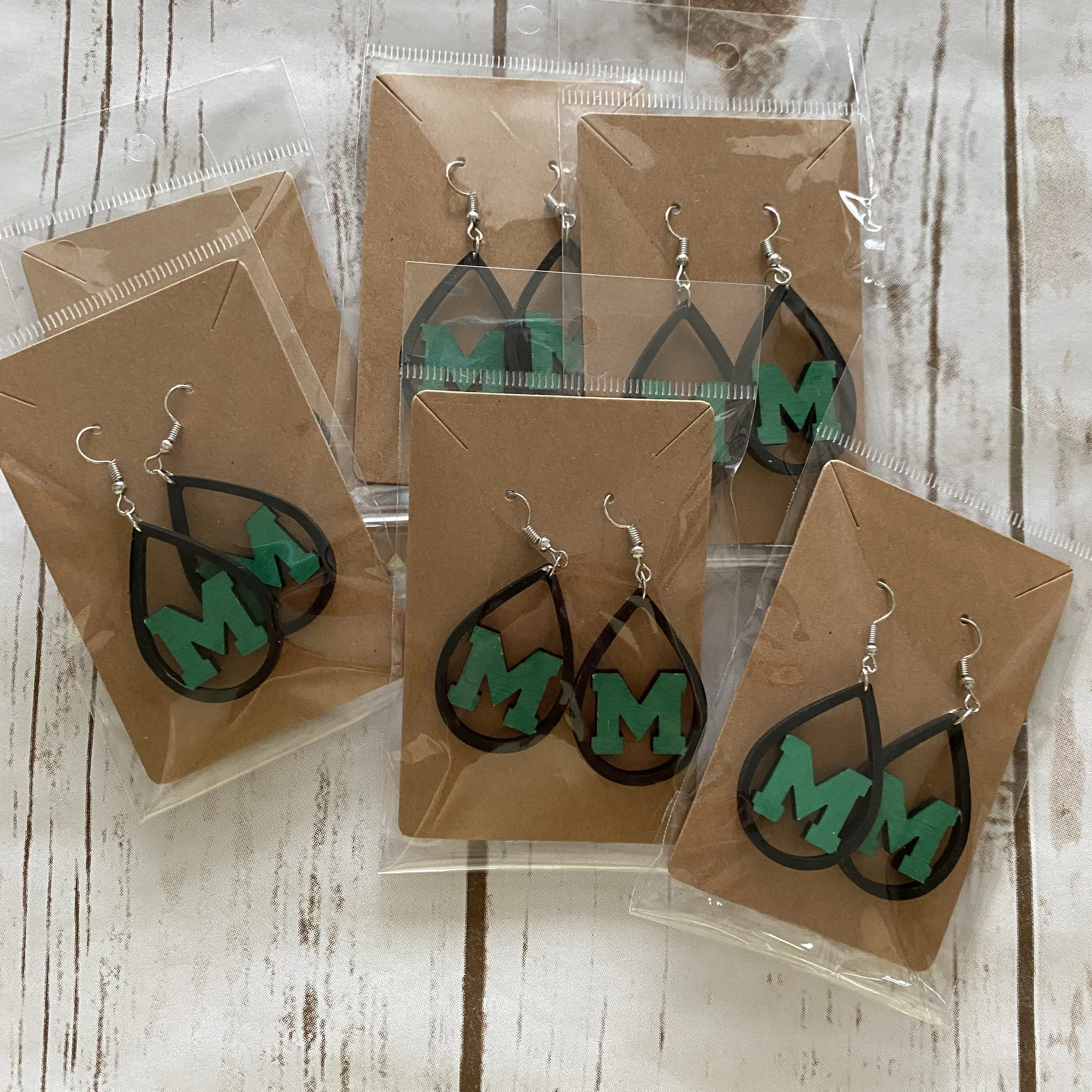 Product Description: teardrop are 1.5” tall, round are 1.5” diameter. Made of mdf so super light.