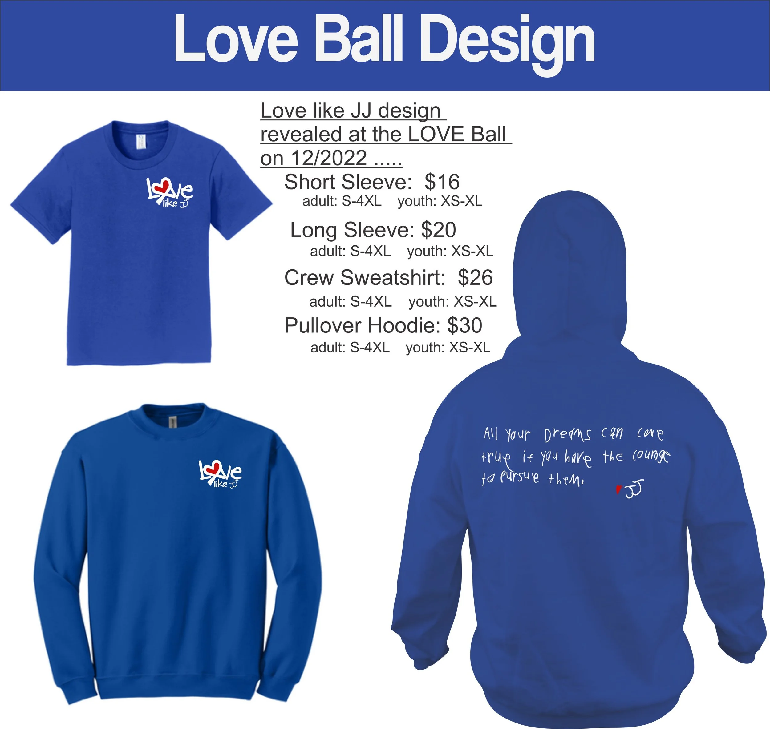 Proceeds from each item purchased will be donated to the LOVE like JJ Foundation (www.lovelikejj.org)